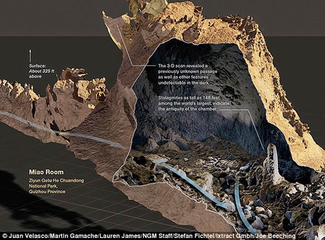 Descoberta el 2001, la Miao Chamber , considerada la segona major sala del mon després de la Sarawak, ha estat “mapejada” amb precisió per mesurar les seves dimensions per un equip de la National Geographic.